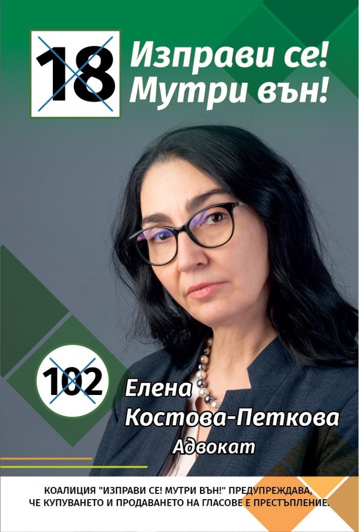 Адвокат Костова-Петкова споделя, че не може да оправдае мълчаливото съгласие, с което на всеки четири години снабдяваме с власт компрометирани, неспособни и зависими хора, че е необходимо спешно законодателната и изпълнителната власт да бъде предадена на знаещи и можещи българи с визия, които да помогнат да се възстанови държавността, че мечтае за България, в която политиката няма да е средство за бързо забогатяване, а МИСИЯ и с усмивка ни припомня „Гола съвест” на Хайтов.