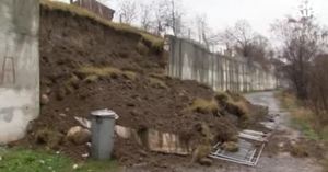 Срутилата се стена е строена преди повече от десет години, за да спре свлачището в района. Заради дъждовете то отново се е активизирало.