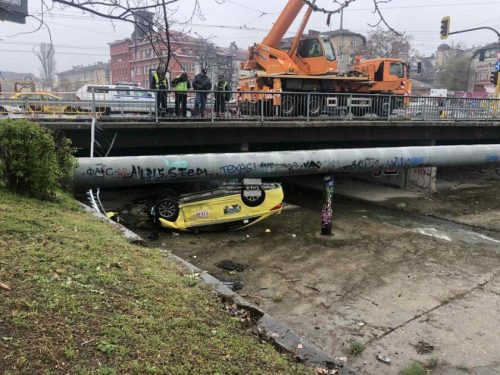 Такси се приземи по гръб на дъното на канала на река Владайска след катастрофа на ъгъла на софийския бул. „Сливница“ и ул. „Опълченска“. По информация на NOVA две коли са се сблъскали на кръстовището, като една от тях е изблъскала таксито към канала. В инцидента, станал около 7 ч., е пострадал един от шофьорите, сочи първоначалната информация.…