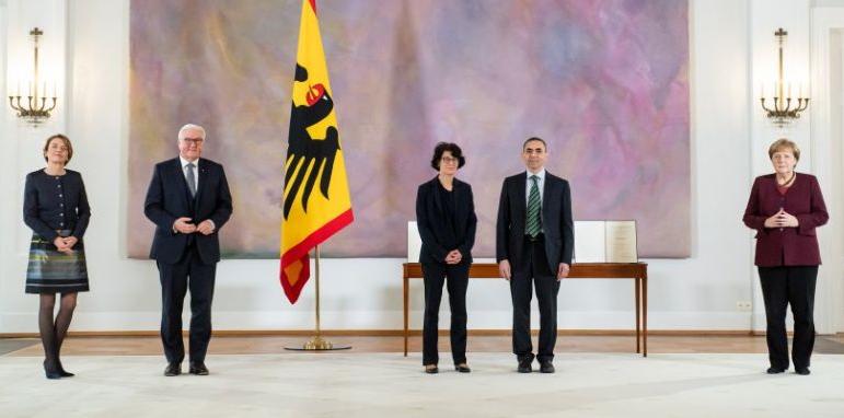 Германският президент Франк-Валтер Щайнмайер награди с Кръст за заслуги шефовете на биотехнологичната компания „Бионтех“, съобщи Дойче веле. Угур Шахин и Йозлем Тюреджи разработиха първата ваксина срещу коронавирус. Те са изключителни учени и смели предприемачи, заяви Щайнмайер на церемонията в резиденцията си в Белвю край Берлин. „Вашето революционно откритие спасява човешки животи, защитава хората от банкрут,…